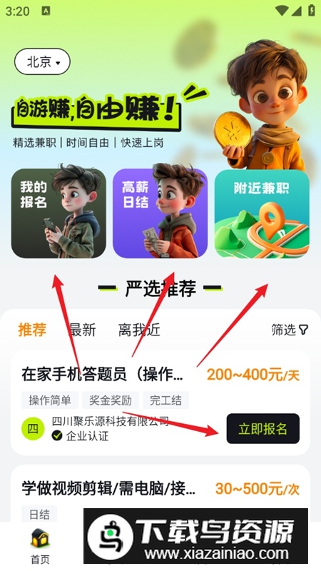 自游赚兼职APP官方最新版本是一款专注于为用户提供多样化兼职机会的手机软件,这款应用操作简单高效,能够根据个人兴趣与时间灵活推荐合适岗位,覆盖线上线下多种工作类型,让每位用户都能轻松找到适合自己的兼职,喜欢的话就来本站下载使用吧。