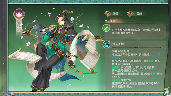 晋子实是阴属性法师,来自仙派关雎,拥有多段攻击与强效控制能力。
