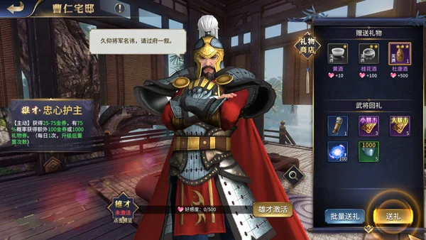 3、招募将领并通过提升好感度解锁其专属雄才技能;