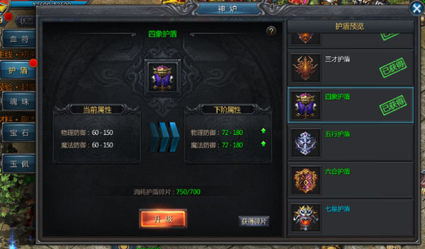 神炉护盾界面展示10阶进化链,高阶护盾提供显著防御增益。消耗护盾碎片升级基础护盾,有效防止被秒杀。碎片主要来自单人副本与活动奖励,每日副本次数务必完成;护盾加持提升生存韧性;