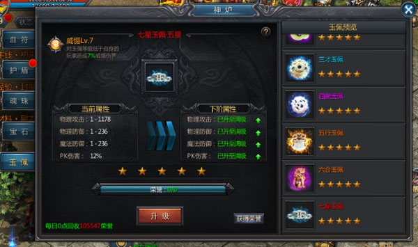 1.玉佩提升基础属性同时强化玩家间对抗伤害;