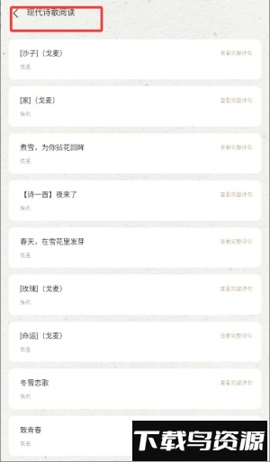 3、从列表中选取感兴趣的诗作,点击进入查看完整内容与作者信息;