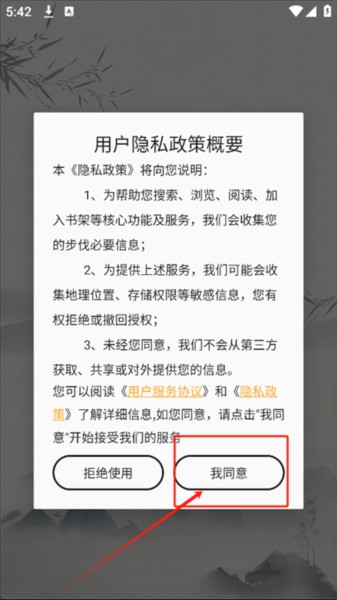 1、打开笔书亭,同意相关协议后进入应用。