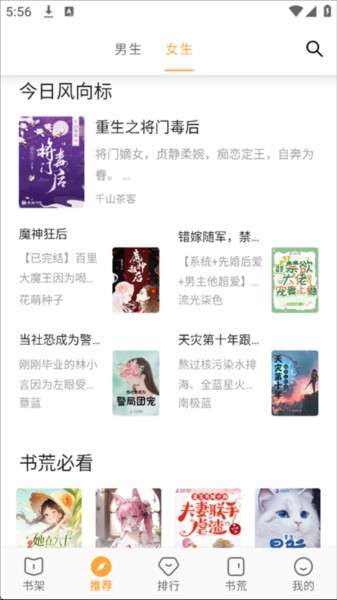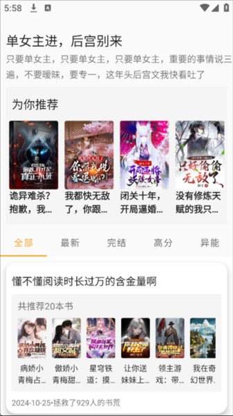 2、进入推荐页面,这里展示各类热门小说资源。