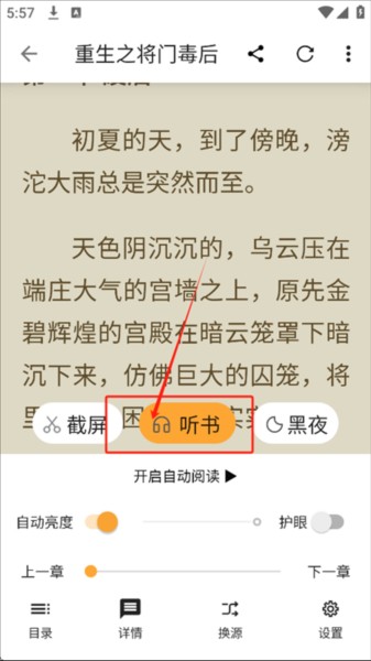 4、找到书籍后点击进入阅读界面,还能使用听书功能。