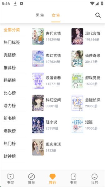 4、分类榜单齐全,贴合你的喜好,告别书荒;
