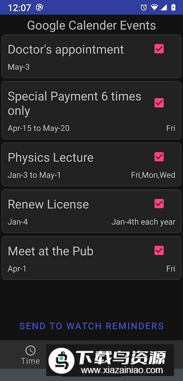2. 手表目前仅支持全天类型的活动提醒功能。