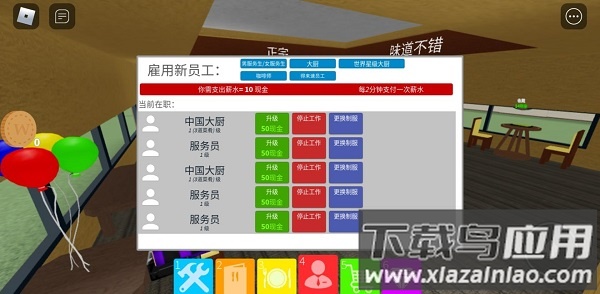 6. 服务员最多雇佣六名,同样可用现金升级,每次50,最高三级;更高级的服务员效率更高,能提升服务评分;在人数有限的情况下,应优先保证服务质量而非盲目扩张。