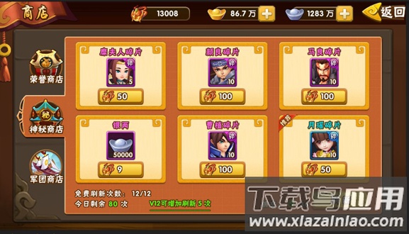 神秘商店是获取碎片的重要渠道,常出现橙将碎片、整卡及装备道具,可根据需要购买。将魂可通过分解闲置武将或在竞技场中获取。