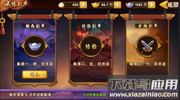 每日参与剧情副本可获得大量资源,包括武将经验、银两、碎片及护脉丹等。前期副本难度较低,每日关卡重置后可扫荡五次,是稳定获取基础资源的重要途径,建议每日优先完成。