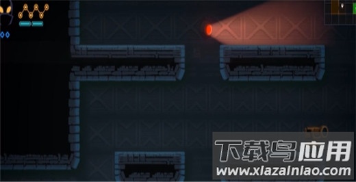 洗手间是一个存档点;随后玩家需要破解前方的四个机关,机关开启方法在附近即可找到,相对简单。解开后便能进入一条隐藏通道,在其中取得剑气技能。利用剑气可以打开后续的门户,继续向上前进,会遇到一个充满硫酸的池子,注意不要跌落,从上方跨越即可。