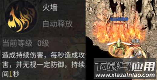 火墙:释放火焰点燃地面,对区域内敌人持续造成伤害;虽单次伤害不高,但持续灼烧可累积可观输出,并能大范围牵制敌人而不影响对主目标施放其他技能。