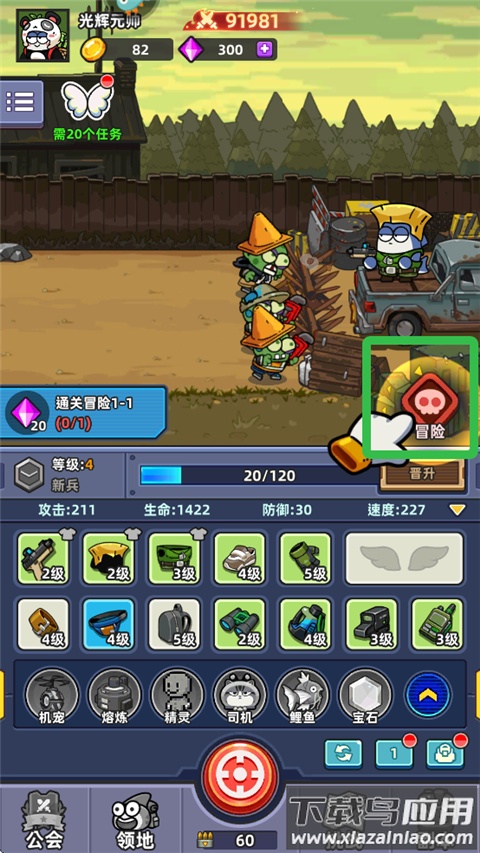 5、点击冒险模式开启关卡挑战,胜利后可领取丰厚奖励。