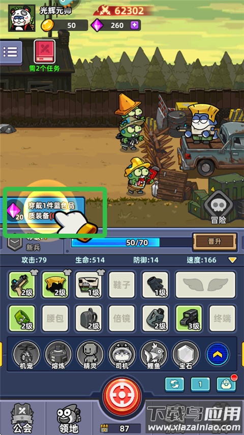 1、收养变异的宠物,它们能协助攻击僵尸、收集资源,甚至可以进行合体进化;