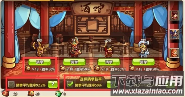 1、仅需赢一局即可招募武将;三局得紫将胜率87.5%,五局得金将胜率96.88%;此方式与金将猜拳需36老窖,与紫将需19二锅头。