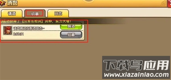 猜拳胜利后,武将进入招募列表,需等待一段时间才可正式招募;可使用解酒药缩短等待时间。