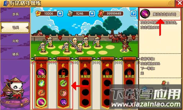 注意:同层三个兵法只能选择其中一个学习。