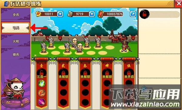 1、选择兵种:包括步兵、弓兵、火枪、骑兵。