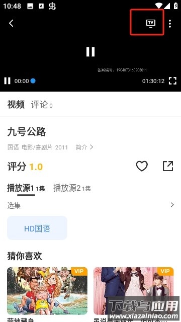 4. 轻点播放画面可唤出控制菜单,点击右上角电视图标;