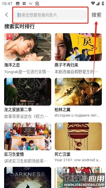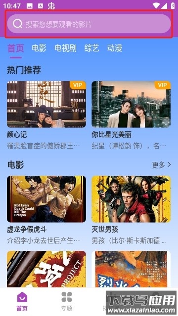 1. 进入应用主页,可通过顶部搜索框查找想看的影视内容;