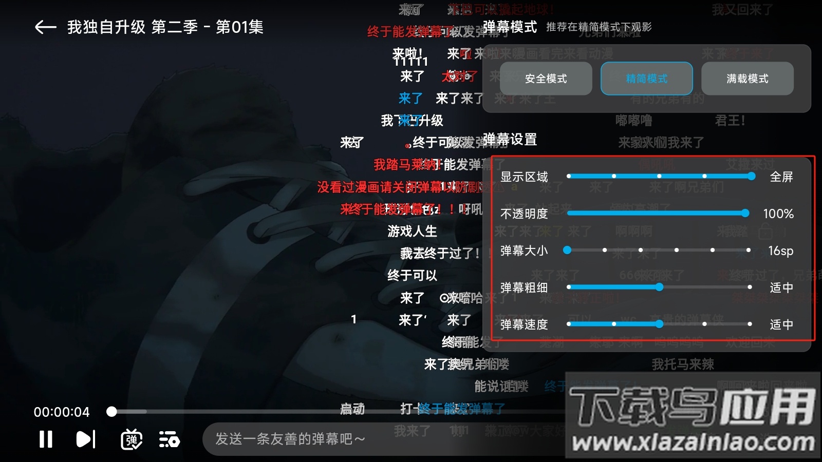 5、在观看界面中,用户还可以调整弹幕的透明度、字体大小等参数。