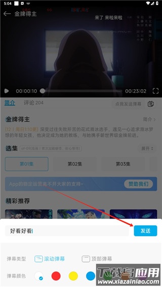 2、输入想要发送的文字内容,选择弹幕显示模式与字体颜色,点击发送;