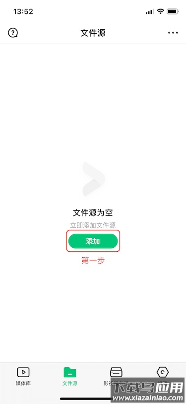 第一步:首次打开应用,在媒体库界面找到添加按钮并点击;
