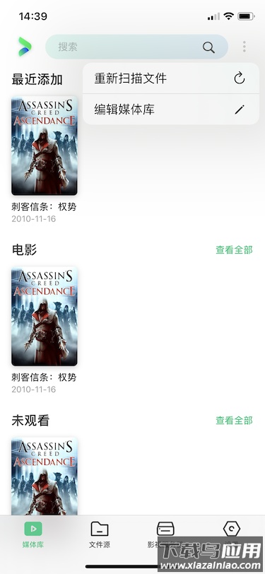 1. 点击右上角菜单图标可进行“重新扫描文件”或“编辑媒体库”操作;