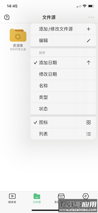 1.8 添加/修改文件源:通过右上角菜单进入此功能。