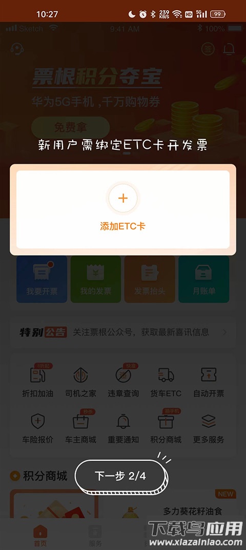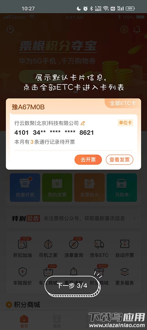 2. 新用户通常需要先绑定ETC卡才能开发票,请在首页上方找到添加ETC的入口进行绑定操作;