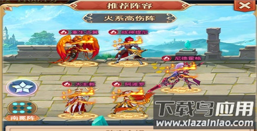女神雅典娜的烈焰护盾可反弹伤害;战神提尔与阿波罗施展大范围焚烧,压制对方血线;携带焚烧效果的敌人会触发阿波罗的暴击提升;重生之翼协助保护队友,尤其看护阿波罗,并对敌方造成一定伤害;大主教则增强战神提尔的群体输出与前排生存能力;