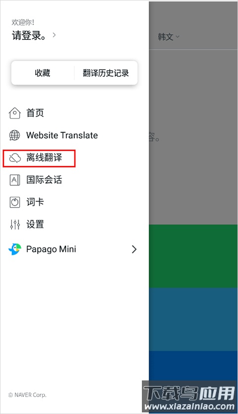 2、在菜单中选择离线翻译功能;