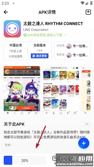 2、以“太鼓达人”为例,应用详情页会明确显示下载按钮与安装包大小。