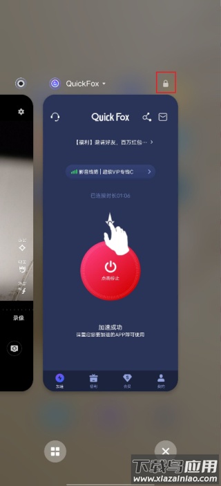 Step.2 加速成功后请将应用保留在手机后台运行,勿随意关闭;若加速器后台被关闭,会影响正在加速的软件正常使用,建议锁定后台避免中断。