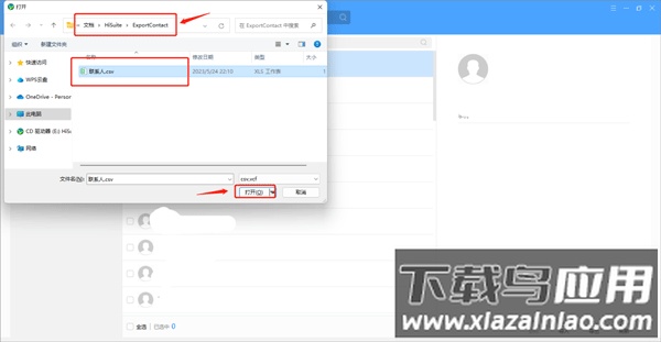 3、随后在电脑目录内找到存储联系人信息的文件,选择并打开该文件,即可将其批量导入至手机助手电脑版中。