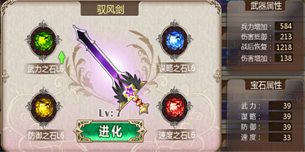 在姬魔恋战纪中,武器是提升战姬实力的重要途径;通过升级武器与镶嵌宝石,可以显著增强角色的各项属性。当武器镶嵌满四种属性宝石后,即可进行升级,升级后将消耗所有宝石并保留原有属性,随后可继续镶嵌对应等级的宝石。 以下为剑盾武器各等级属性详情: 一级剑盾武器属性