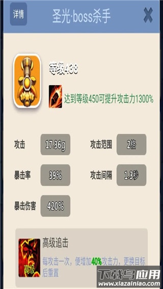 搭配天使等群体攻击宠物,以及具备狂暴技能的宠物,在装备加持下可顺利推进至2200关左右。前期无需过度追求紫色或橙色品质装备。2300关后,鹰眼宠物(增加射程0.5格或1格)将发挥重要作用,即使数值一般也可沿用至后期。