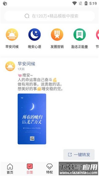 2、制作个性日签,将喜爱的图片转化为带有问候语的分享图,一键发布至社交平台。