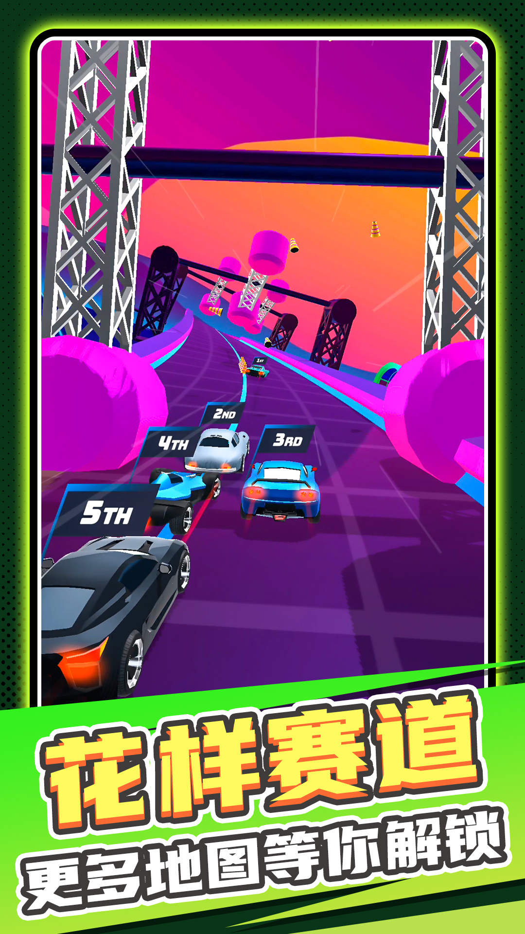 1、仅用单手操控方向就能轻松驾驶,游戏中还有超级跑车与险峻赛道等待你的解锁与征服。