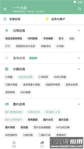 1、首先下载并安装一个木函旧版本应用,打开后即可直接使用各项常用工具。