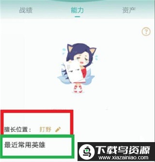 2、切换到页面上方的能力区域,这里会展示你最近常用的英雄与擅长位置。