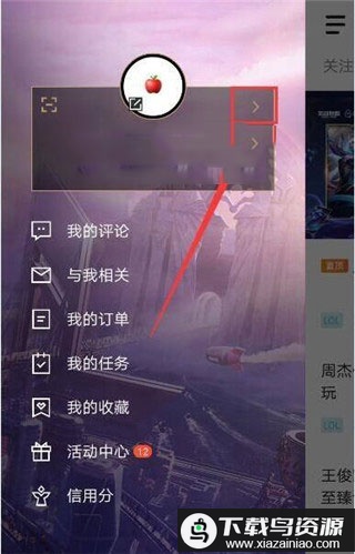 2、在个人主页中,点击昵称旁边的箭头符号,进入战绩与互动中心。