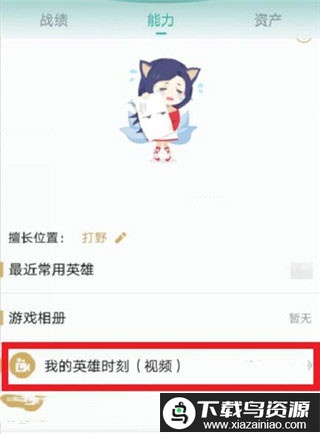 3、继续向下滑动,在游戏相册下方找到英雄时刻栏目,点击即可观看所有已保存的游戏精彩录像。