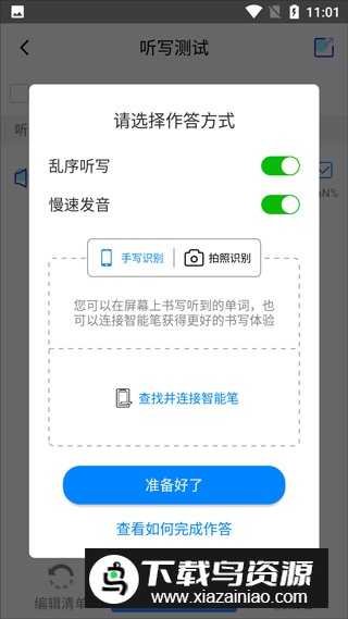 4、点击准备好了,即可开始正式的听写测试。