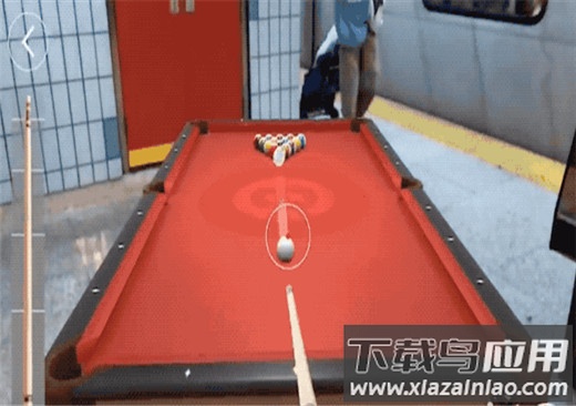 5. 移动位置寻找合适角度,将屏幕中心的圆形准星对准要击打的球,拇指在屏幕上向后拉动并松开,即可完成击球。