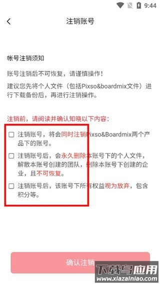 2、在注销前建议仔细阅读注销须知,阅读完毕后勾选下方确认选项;