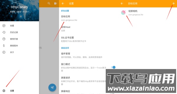 进入软件设置菜单,在目标应用选项中添加轻颜相机,即可针对该应用进行专项流量捕获。