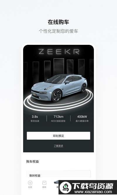 3、爱车商城:在线即可完成车辆选配与下单,定制你的专属极氪座驾;