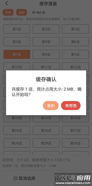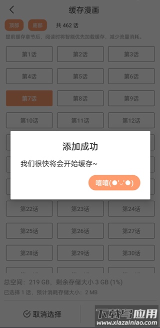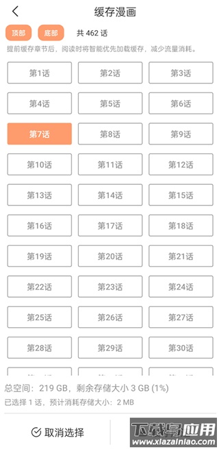 3、在弹出界面中选择想要缓存的具体章节话数;
