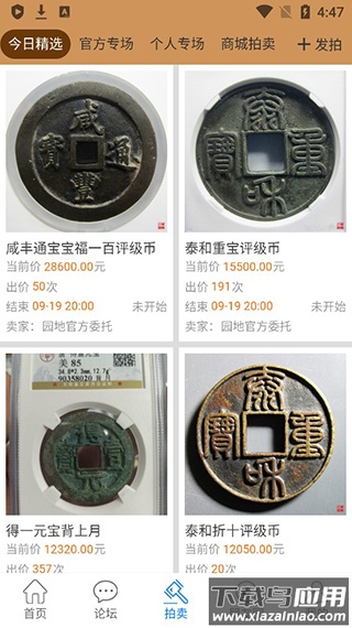 5. 查看拍卖信息,了解当前文物钱币的拍卖动态。